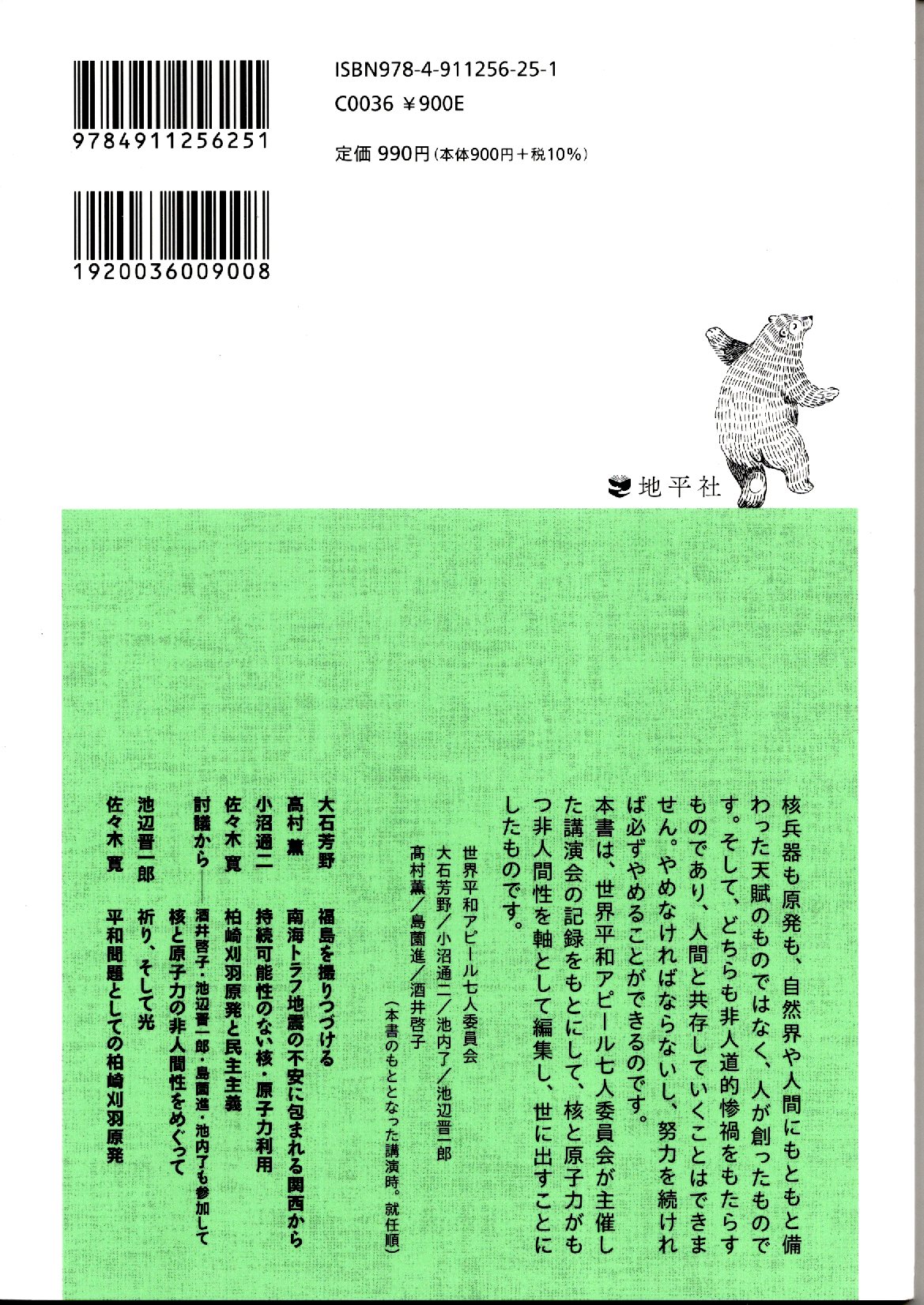 核と原子力の非人間性 大石芳野 高村薫 小沼通二 佐々木寛 (編)世界平和アピール七人委員会 地平社 ISBN978-4-911256-25-1 990円+税 2025年6月