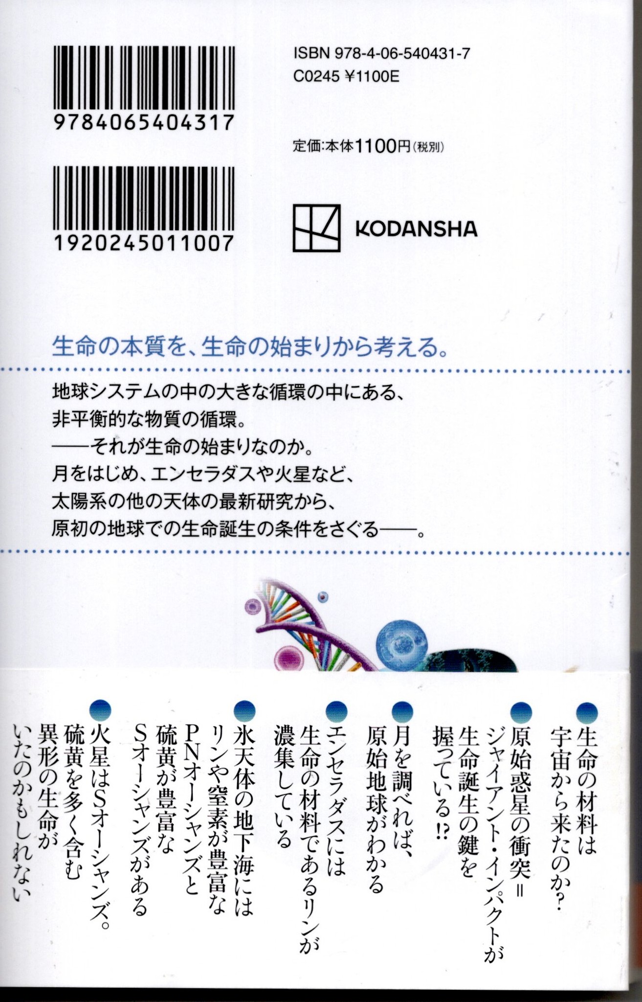 生命の根源を問う 関根康人 講談社ブルーバックス ISBN978-4-06-506431-7 1,100円+税 2025年7月