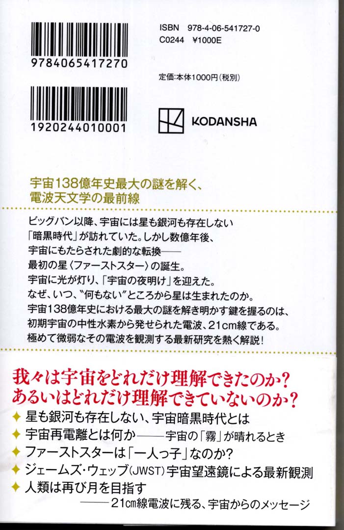筆者が研究している「宇宙暗黒時代の夜明け」の話だけではなく、宇宙全史と宇宙論の解説もあるので、これ一冊でも宇宙のことがわかるようになっている。