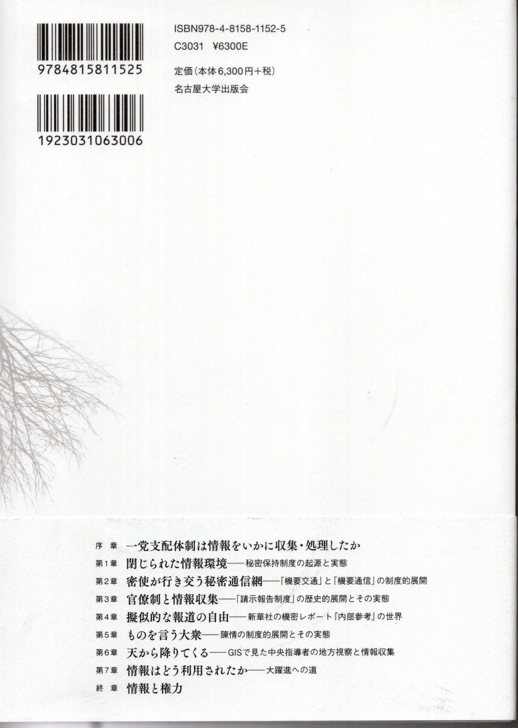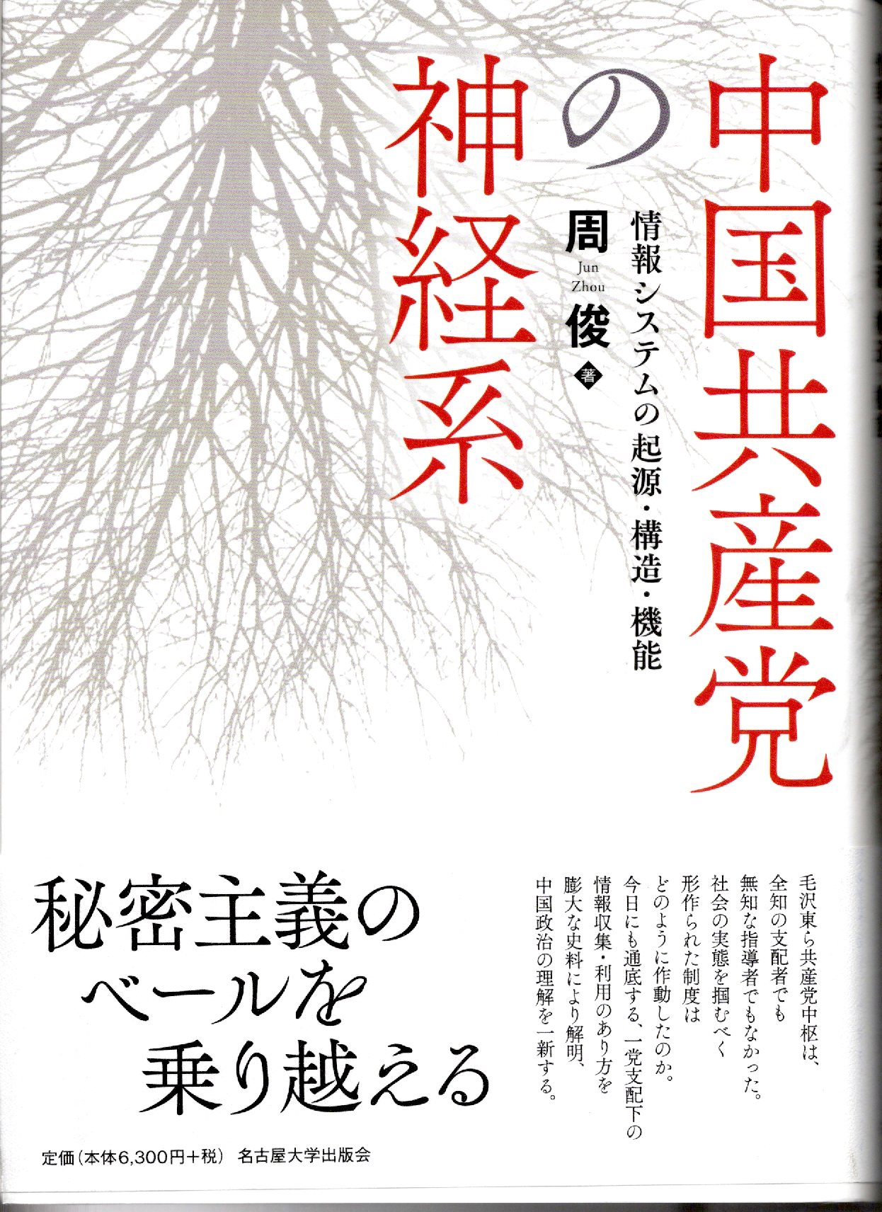 中国共産党の神経系 周俊 名古屋大学出版会 ISBN978-4-8158-1152-5 6,300円+税 2024年6月