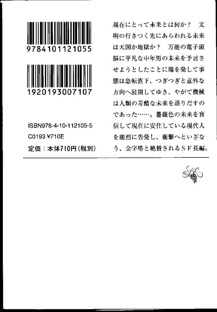 日本でもそれに対抗すべく予言機械の開発が行われる。中心は勝見博士、助手にョ木、政府委員友安、開発チームの1員和田勝子など。ただ、社会・経済・政治などの予言は、その予言が共産主義到来となっても困るので、それとは関係ないと思われる題材を探すことになる。