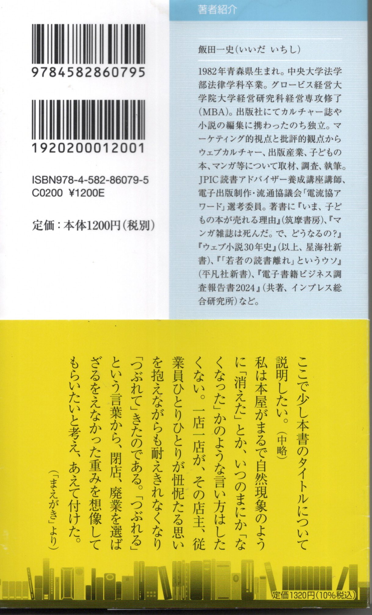 町の本屋はいかにしてつぶれてきたか 飯田一史 平凡社新書 ISBN978-4-582-86079-5 1,200円 2025年4月(2025年5月第3刷)