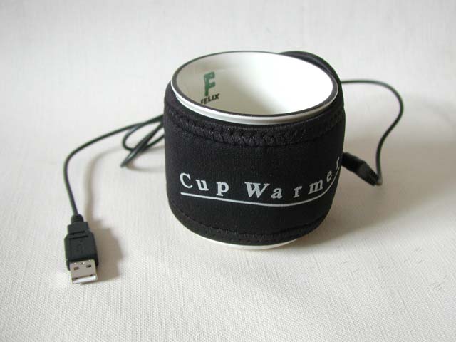 | カップ・ウォーマー。冷えにくくなるという程度。 | きれい好きの必需品? クリーナー。別形のノズル付き。また吸引力を強くするターボ・スイッチもあります。キー・ボードの掃除に使います。 |