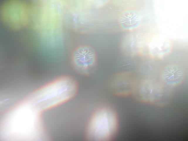 昼間、出窓を見ています。出窓に置いたものに太陽の光が反射していて、それを見るとこのとおり。