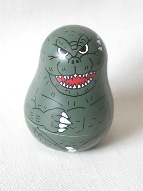 | 一番外側のゴジラ(“シェーッ”している)。 | 中身です。外からゴジラ、ゴジラ、キングギドラ、氏名不詳、モスラ(幼生)、氏名不詳。 |