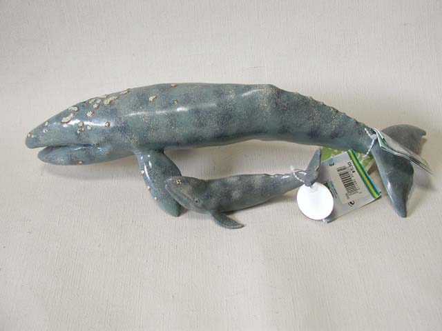 | コククジラ(Grey Whale)の1/40模型。名前の由来は諸説あって不明(英名は単純)。浅い海に生息するらしいが、日本沿岸ではまれ。アメリカ西海岸では人気者。 | 3クジラ(3 whales)。体長40cm程度。 |
