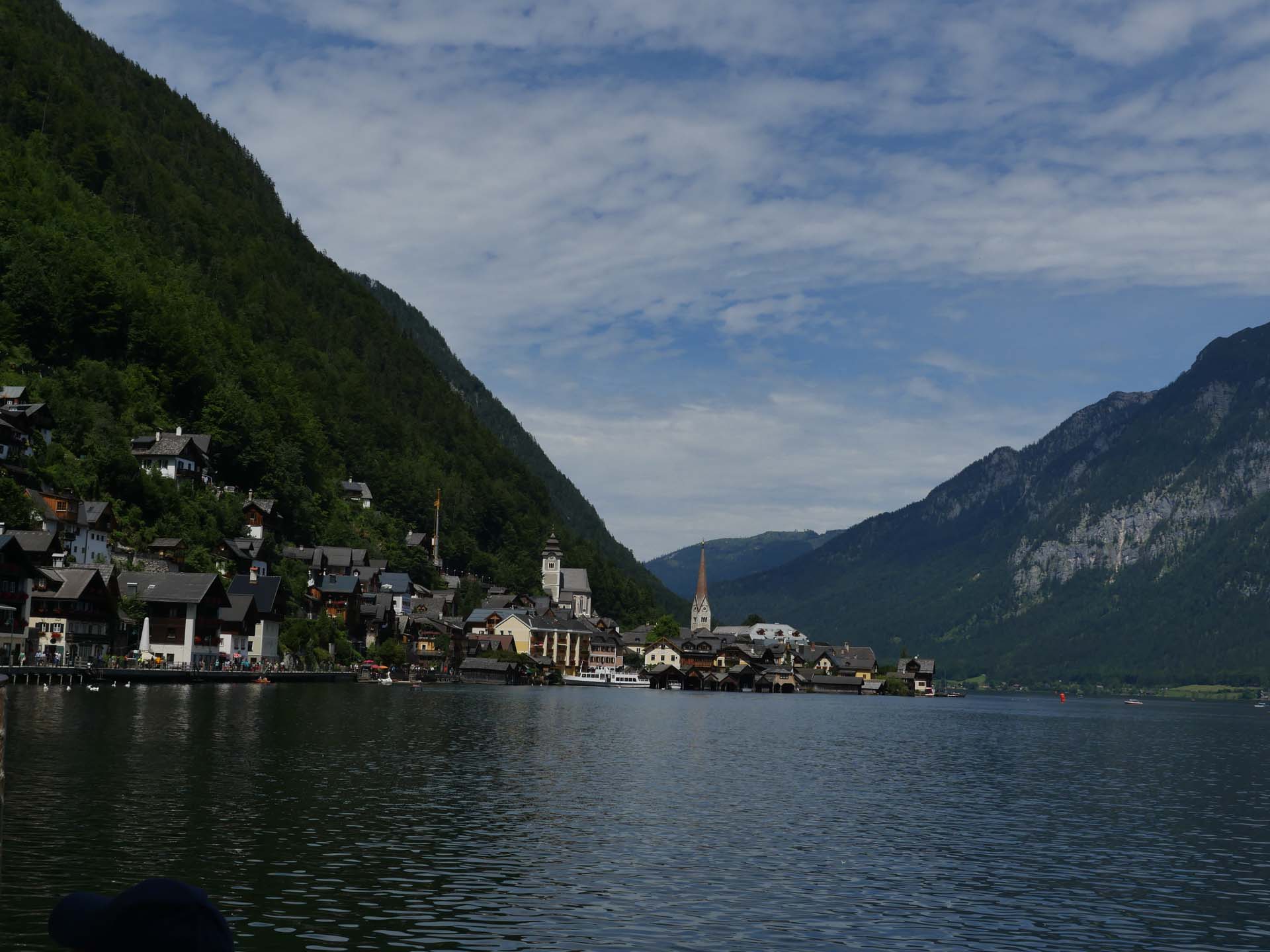 この日は東に250km離れているハルシュタットへ遠征です。8時にホテルを出発しました。高速道路に乗ってしばらくすると渋滞に巻き込まれまてしまいました。こちらでも観光シーズンは高速道路は渋滞するようです。ザルツブルグなど、この辺は岩塩地帯です。ハルシュタット湖脇のトンネルを抜けると駐車場。ハルシュタットには予定より1時間半ほど遅れて到着。湖畔を少し歩いたところにあるレストランで昼食です。