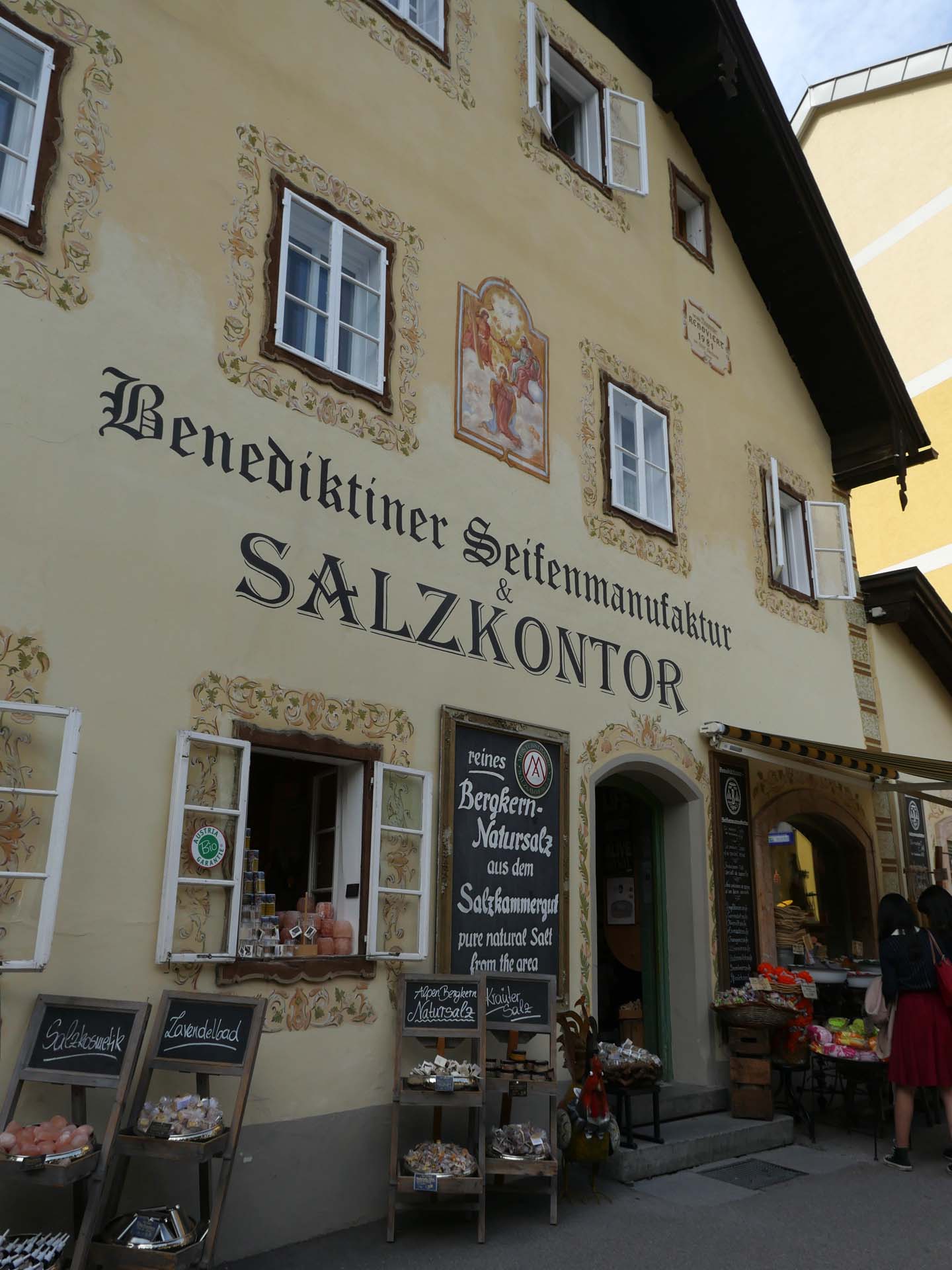 昼食後は、ぶらぶら歩いてお土産屋さん(岩塩屋さん)をのぞいたりしながら元来た道を戻ります。駐車場の前にはスーパーマーケットがあり、ここでも岩塩を(安く、ただし日常生活用)売っています。