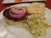 | ジャンプ台を拡大しました。オリンピックのマークが見えます。 | 牧場です。 | スネーク川でラフティングを楽しむ人たち。 | バッファローバーガー。いわれなければわかりません。 | ジャクソンの公園の入り口はエルクの角のアーチです。 |