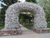 | アーチを拡大しました。Jackson Holeとあります。 | ジャクソンはカウボーイの街です。 | テイトン山脈を飛ぶヘリコプター。 | ジャクソン・レイク・ロッジの2階から見るテイトン山脈。正面はモラン山(3842m)。 | ロッジ横の高台から見るテイトン山脈。正面にグランドテイトン、右にモラン山。それらの手前にジャクソンレイクも見えます。花はsunflowerの仲間? |