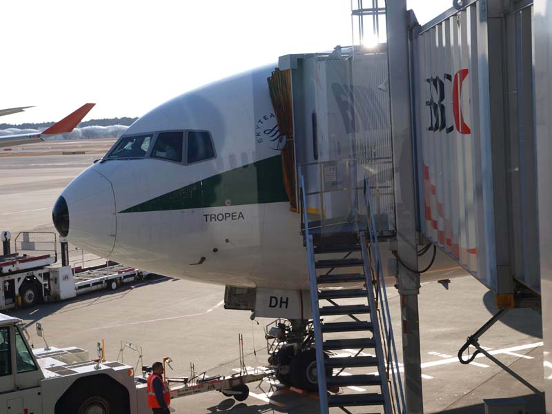 10時過ぎの成田エクスプレスで新宿から成田空港へ。この3両編成(東京で品川方面からのものと増設)の成田エクスプレスはがらがらの状態でした。11時半ころに成田空港に着き、軽い昼食をとります。