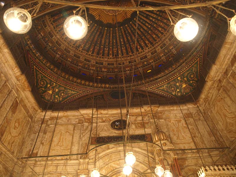 午前の観光は、ナイル河東岸のイスラム地区から始まります。ホテルが西岸にあるので、ナイル河を渡り、さらにカイロを一望できるモカッタムの丘に登ってサハーラ・アル・ディーンのシタデル(要塞)と、その中にあるそソリマン・パシャ・モスクやムハンド・アリ・モスク(アラバスター・モスク)を見学します。この建物は12世紀後半以降のものなので、これまでの遺跡、さらに次の日の予定のピラミッドと比べると“新しい”という気になってしまいます。