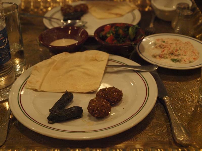 この日の夕食は、ホテル近くのシーフード・レストランで、シーフードのコース料理でした。レストランの窓からは三大ピラミッドでもやっている「音と光のショー」が見えました。ホテル戻って、ホテル内の本屋さんでエジプトのガイドブック(「芸術と歴史の国エジプト」、27ドル)を買いました。