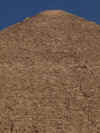 昼食後は、1時間ほど南に下ったところにあるダシュハールの赤のビラミッドと屈折ピラミッドの見学です。両者ともクフ王の父、第4王朝の初代スネフェル王(在位紀元前2613年ころ〜2589年ころ)が建てました。車が赤のピラミッドの近くに止まったので、赤のピラミッドは眼前に、屈折ピラミッドは少し離れて見ることになります。この時代のピラミッドづくりはまだノウハウを蓄積している段階で、いろいろと試行錯誤をしていたようです。
