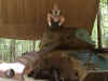 | 戦車をぶんどりました。 | 武器工場です。 | 狙撃兵になってみました。これは別料金、ライフル(M16?)の弾10発で360,000ドン(約1,800円)。 | 武器の残骸を利用して作ったおみやげ。 | タイヤを利用して草履を作っています。 |
