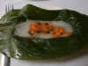 | ベトナムの人がよくかぶっている帽子を作っています。無地のように見えますが、かぶると影絵になります。 | 昼食の一部。お持ちの粉とシュリンプをバナナの葉に包んで蒸したもののようです。夜の入り口はこちら。 | どちら側からも見ることができる透明な刺繍。 | 午門(王宮門)から太和殿を見ています。 | 午門を外側から見ています。 |