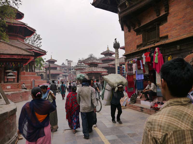 その後は世界遺産になったクマリ(少女の生神さま)が住む館を中心とする、世界遺産になったお寺やお店が建ち並ぶ旧市街の見学です。21年前と変わらぬ建物群、その間を歩いていた牛がいなくなり、その代わりにバイクが通り抜けるところだけが変わっていました。世界遺産だから、勝手に街の風貌を壊すようなことができないのでしょう。でも、お店も変わらないものもありますが、昔は当然無かった携帯電話屋さんなどもできていました。まだ少女のクマリはほとんど毎日16時頃、観光客相手に窓から顔を出すようです。「仕事」とはいえ、大変だ思いました。もっとも、家の中だけで生活しているので、窓から外を見ることが息抜きになるのかも知れません。クマリの館の入り口付近では、クマリの写真がたくさん売られています。