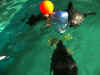| アムンゼンとともに南極点に到達した雪生活の達人・犬ぞり使いの名手ヘルマー・ハンセン(1861年〜1930年)と(雪に埋まっていますが)犬ぞりの銅像。後ろは当時の船が保管されています(フラム号ではありません)。 | 極水族館の入り口。お土産屋さんもあります。 | 大きな魚がいます。 | アザラシが遊んでいます。下から見ることができるトンネルもあります。 | 高緯度なので、パラボラアンテナが下を向いています。 |