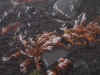出発すると、「風が強くて戻ってきた」という人が何人もいました(この日は発達した低気圧(一時は中心気圧が640hPa台)が三陸沖を北上していて、北アルプスでは遭難・死亡事故も起きていました)。一応行けるところまで行こうと出発。カルデラ内は風がない。でも、前掛山への登り、樹林が途絶えたところからものすごい風。登るに従い風はますます強くなります。20m/s以上、瞬間最大風速は30m/sを優に超えているでしょう。ときどき体がぐらつきます。さらに、ガスが枯れ草にぶつかるとそこで氷になります。その氷が風でちぎれて飛んできます。顔が痛い。