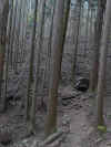 岩茸石山(793.0m)についたのは12時でした。写真を少し撮っただけで通過しました。次の展望のない惣岳山はパスして、左の巻き道を使いました。惣岳山を巻いても、御岳駅まではいくつかの小ピークを越えなくてはなりません。小さな送電線の鉄塔、巨大な鉄塔、また小さな鉄塔と鉄塔を三つやり過ごして、ようやく麓に近づきました。と参道入り口に降りたのは13時45分でした。下りは膝が痛むので、コースタイムで歩くのがやっとになってしまいました。