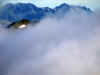 | 奥穂高岳の全容。 | 鹿島槍から白馬岳などの後立山連峰。 | 立山から剣岳。 | 前常念岳への道。 | 常念岳を振り返ると、ガスに覆われ始めていました。右に常念乗り越しへの道(通行止め)が見えます。 |