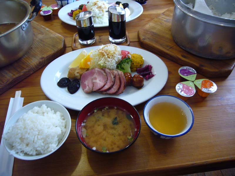 17時半から夕食。昨日が土用丑の日、昨日が雨で登山者が少なかったのでしょうか、この日の夕食にウナギが出ました。