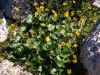 本当に名残は尽きないのですが、6時10分ころ出発。少し下ってから、前常念岳への道に分岐します。サックを回収して、分岐を6時50分に出発。細い稜線、風がものすごく強く、岩稜の下りで足下がふらつきます。それでもお花畑もあり、心が和みます。常念乗り越しからの巻道(通行止めになっていました)との合流が6時50分。