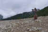| 吊り橋の下を流れる川。 | この小さな橋を渡れば、もう三股です。 | 三股の登山道入り口。 | 登山コースの案内板。 | 駐車場からかすかに見えるのは前常念? |