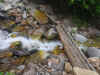 | いったん沢から離れ、胸突き八丁の急登になります。 | 胸突き八丁の桟道。 | 胸突き八丁を終え、沢を横切ります。最後の水場となります。 | 第2ベンチ。 | 標高2450mの常念乗り越し。 |