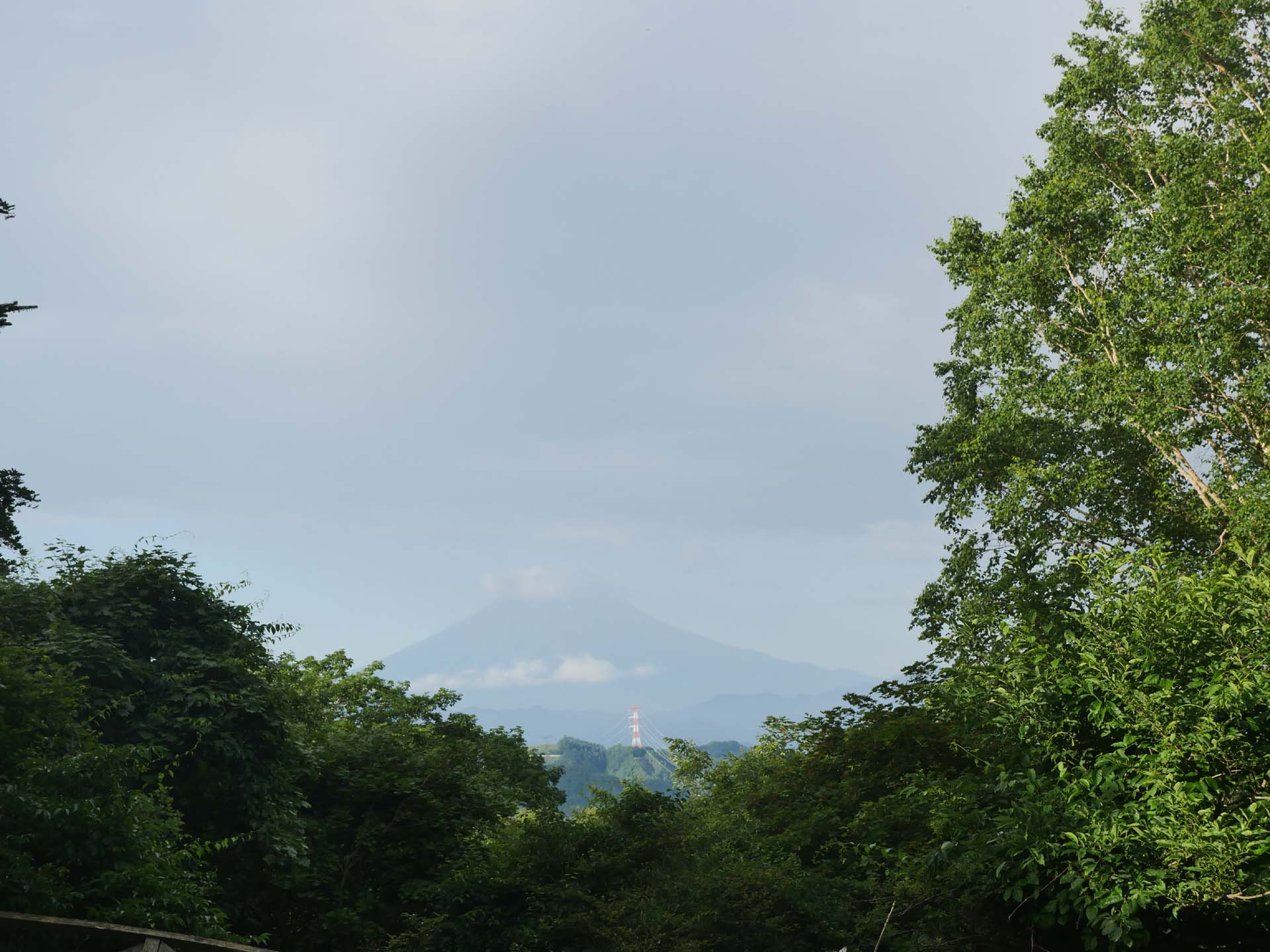 5時40分ころ出発。ロッジ長兵衛から福ちゃん荘までは舗装された林道もありますが山道を使いました。すぐに唐松尾根にとりつかないで、富士見山荘跡に寄り道をします。富士見山荘は廃墟になりかけています。でも、確かに名前の通り富士山が見えます。