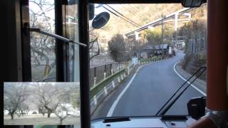 和田峠までの下りはかなり雪が残っていました。和田峠では老若男女のグループが雪遊びをしていました。和田峠からは舗装路です。道が凍結していたらいやだなと思っていましたが、すでに雪はなく乾いていました。13時前に陣馬高原下のバス停に着きました。25分発のバスですが、早めに中に入れてもらえました。先頭に並んでいたので一番前の席を確保し、帰りも前面展望ビデオを撮ることができました。