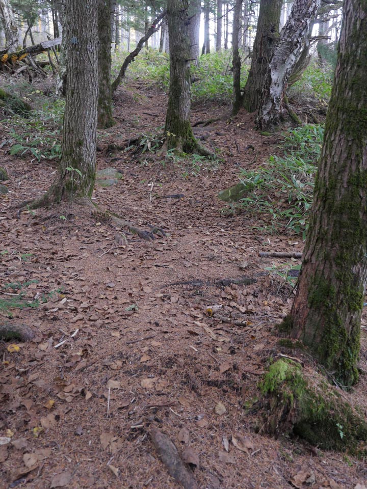 登山道は、湯ノ丸自然学習センターや湯の丸高原ホテルの裏手が入り口になります。登山道は車返しまでの林道やスキー場の管理用道路、さらにはスキーのゲレンデなどを何回か横切ることになります。道は大変よく整備されています。また、カラマツや広葉樹の落ち葉が絨毯になっているところあります。ふかふかして気持ちいい。急登もないので、のんびりと登れます。