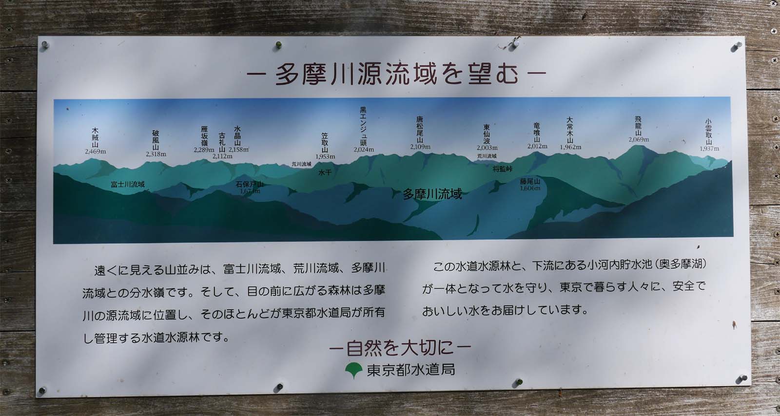 3時半ころ自宅を出発、中央道経由勝沼IC経由で柳沢峠(1472m)を目指します。峠には5時過ぎに到着。富士山に朝日が当たってきれいです。身支度を調え、5時20分ころ出発。柳沢峠付近は山梨県ですが、東京の水源である多摩川の源流の森なので、東京都の水道局が管理・整備しています。