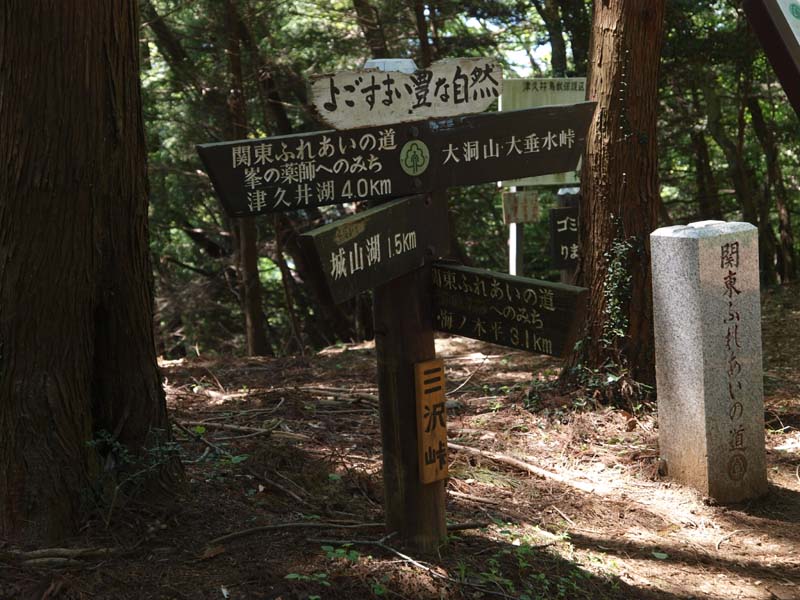 三沢峠は10時半ころでした。グループの登山者たちが休んでいました。ここは大洞山からやってくると、左に降りると高尾山口(梅の木平)、右に降りると峯の薬師や津久井湖、まっすぐ行くと草戸山(道標では城山湖)に分かれる十字路なのです。ここで、梅の木平に降りれば割と楽なコースになります。ただ、高尾山口まで少し車窓歩きになります。この日は草戸山の道を選びます。