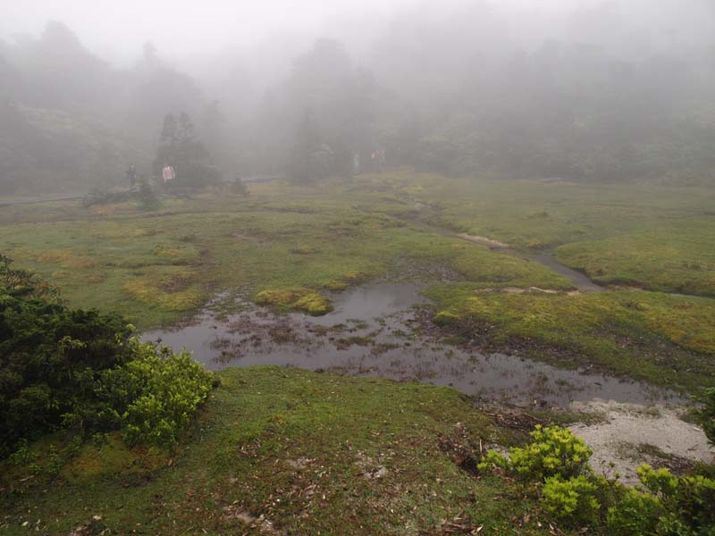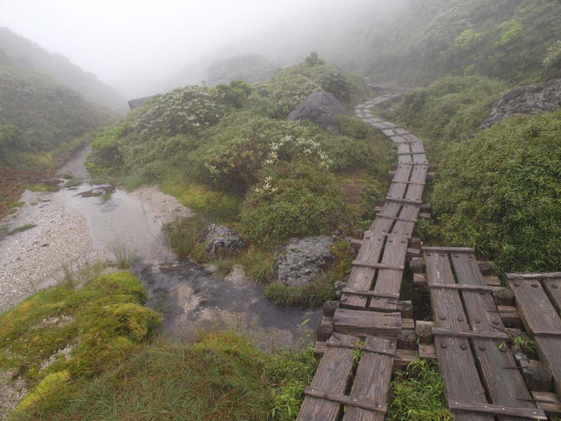 小花之江河、花之江河は休まずに通過し、淀川避難小屋に戻ったのが15時30分。ここで少し休憩。ここから登山道入り口までは緩い登り道です。登山道入り口に戻ったのは16時15分でした。この日の行程は10時間45分の長丁場となりました。一日中雨だったし、花にも展望にも恵まれなかったので、重い思いをして担ぎ上げた2本の交換レンズは結局一度も使うことはありませんでした。