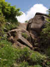 同じ道を戻り、遊仙閣で、今度はレンズを35mmマクロ(35mmフィルムカメラ換算70mm)+1.4倍のテレコンバーターをつけました。35mmフィルムカメラ換算で約100mmの望遠マクロとなります。遊仙閣出発は8時40分。下山開始です。雲尾坂は急降下で大変。お花畑まで降りきり、少し登った雷清水で一休み(9時半)。水もくみます。ここで、レンズを50-200mmや、それに1.4倍テレコンをつけたりして少し遊んだあと、また12-60mmに戻しました。