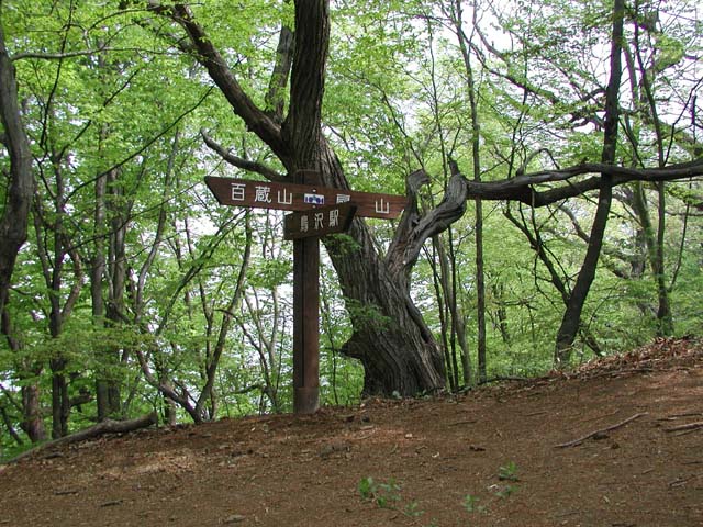 | 梨の木平の案内板(264KB) | スミレかな。 | これはなんだろう。 | 大久保のコル。 | 本当は看板のように富士山が見えるはず。 |