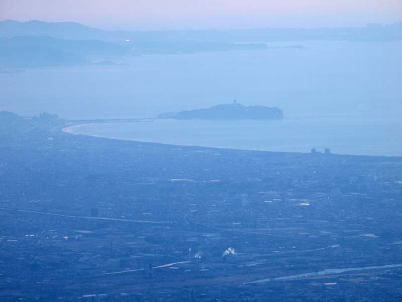 | 愛鷹山。 | 頂上から相模川河口を見ています。うっすらと江ノ島も見えます。江ノ島・三浦半島の拡大はこちら。河口の拡大はこちら。 | 山頂の奥の院。 | 関東平野の向こうに筑波山がうっすらと見えます。拡大はこちら。 | 都心の高層ビル群。 |