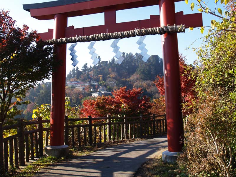 7時55分発のケーブルカーに乗り、ケーブルの山の上の駅には8時過ぎに到着。空気が澄んでいると都心まで展望がきくのですが、この日はちょっと霞んでいました。8時10分ころから歩き出しました。ケーブルカーの終点から御岳神社の参道を通っていきます。いまでも、宿坊(民宿)やおみやげ屋さんが両側に並んでいます。小さい子どもをバイク・スクーターの前に乗せた地元の人が何人も通り抜けました。保育園にでも連れて行くのでしょうか。坂道になると結構きつい。