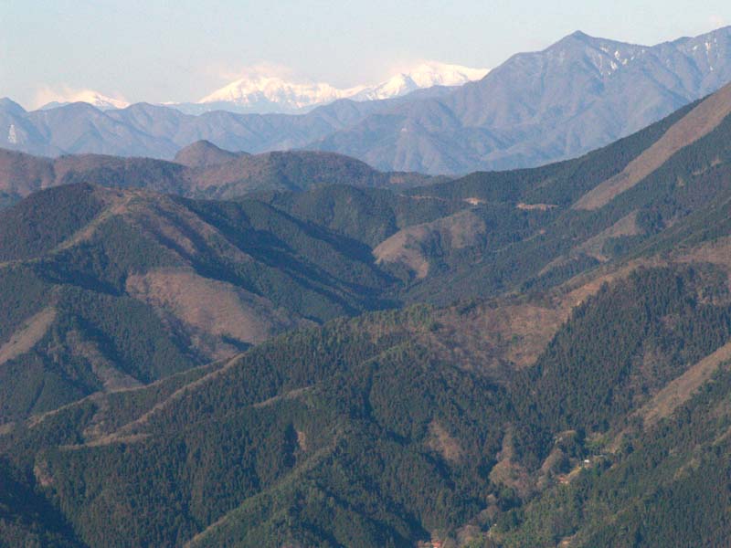 あまりいい天気なので、予定はしていなかった熊倉山をピストンすることにしました。カメラだけ持って、8時45分出発。尾根伝いに熊倉山を目指します。途中、軍刀利(ぐんだり)神社が祀ってあるピーク(本社は麓にある、ここは奥の院よりさらに奥の元社)からの展望も素晴らしい。次いで、軍刀利山のピーク、そしてようやく熊倉山(966m)。着いたのは9時少し前でした。ここも素晴らしい。丹沢方面もよく見えます。