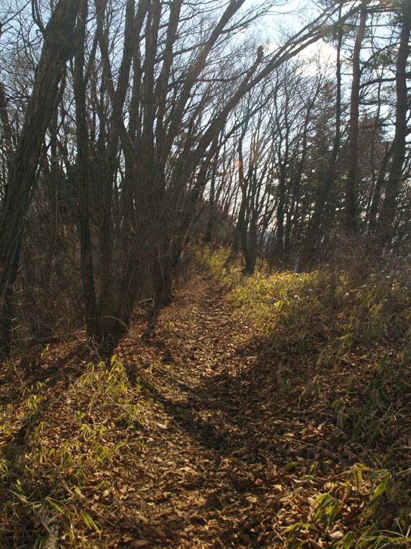 せっかく来て名残惜しいのですが、9時に熊倉山を出発。三国山に戻ったのは9時25分でした。おなかもすいてきたので、お湯を沸かしたカップラーメン。天気予報と違って風が弱く、日当たりにいればじっとしていても寒くありません。荷物を片付けていると、熊倉山方面から人がやってきました。浅間峠から笹尾根経由で登ってきて、最後は高尾山までを目指すそうです。コースタイムだと10時間以上かかります。