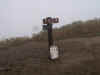 9時35分ころ下山開始。雨が強くなってきたので、一眼レフをしまい、以後コンパクトデジカメで写真を撮ることにしました。平標山下のベンチでおやつの時間にしようと思っていたのですが、団体さんに占領されていたので、平標山に登り返しました。頂上は10時20分でした。テルモスに入れておいた熱いミルクコーヒーとコッペパンのおやつです。
