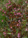 | コケモモ。(イワハゼかもしれない) | 登って来た道を振り返ります。後ろには苗場山。 | 氏名不詳。 | ヨツバシオガマ。 | これから行く道。一番奥が平標山。 |
