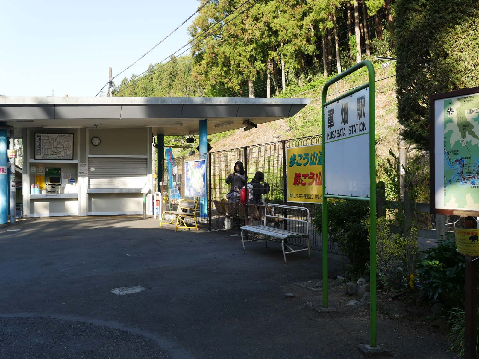 | JR御岳駅。 | ざるそばと生酒。 | ヤマメの塩焼き。 | タラの芽とタケノコの天麩羅。 | 外でも待っている人がいる、この日の玉川屋。 |