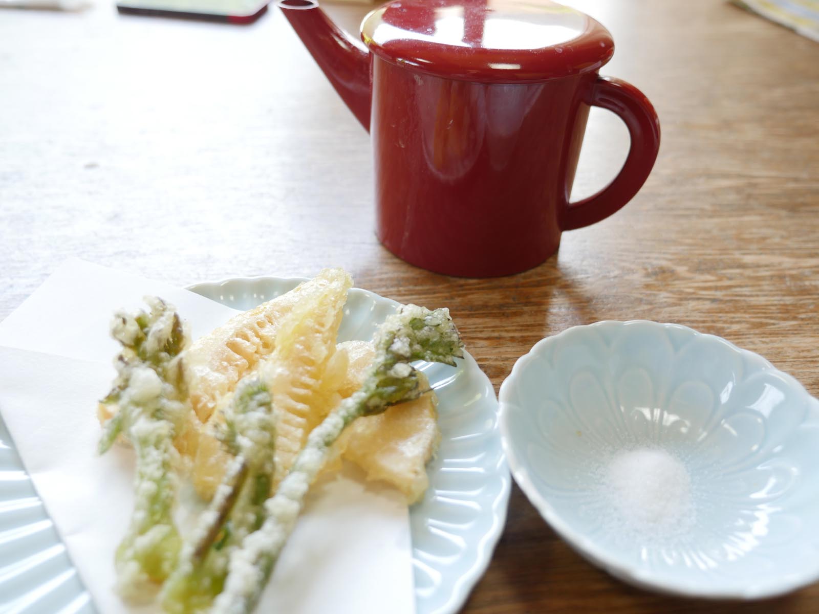 打ち上げは例により玉川屋です。この時間、もう入り口前に大勢の人たちがいましたが、その人たちは煙草を外で吸っている人たちでした。でも中に入るとやはりそこで行列。結局20分ほど待ちました。ざるそば(750円)、ヤマメの塩焼き(700円)、澤乃井生酒(750円)を頼みました。さらに季節もののタラの芽とタケノコの天麩羅(600円)も追加してしまいました。