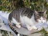 | 稲荷山コースの雪道。 | 高尾山の頂上です。 | 高尾山山頂から見る丹沢主峰群。この日は雲の中でした。 | 紅葉台から奥高尾になります。 | こんな雪山の中にネコがいました。 |