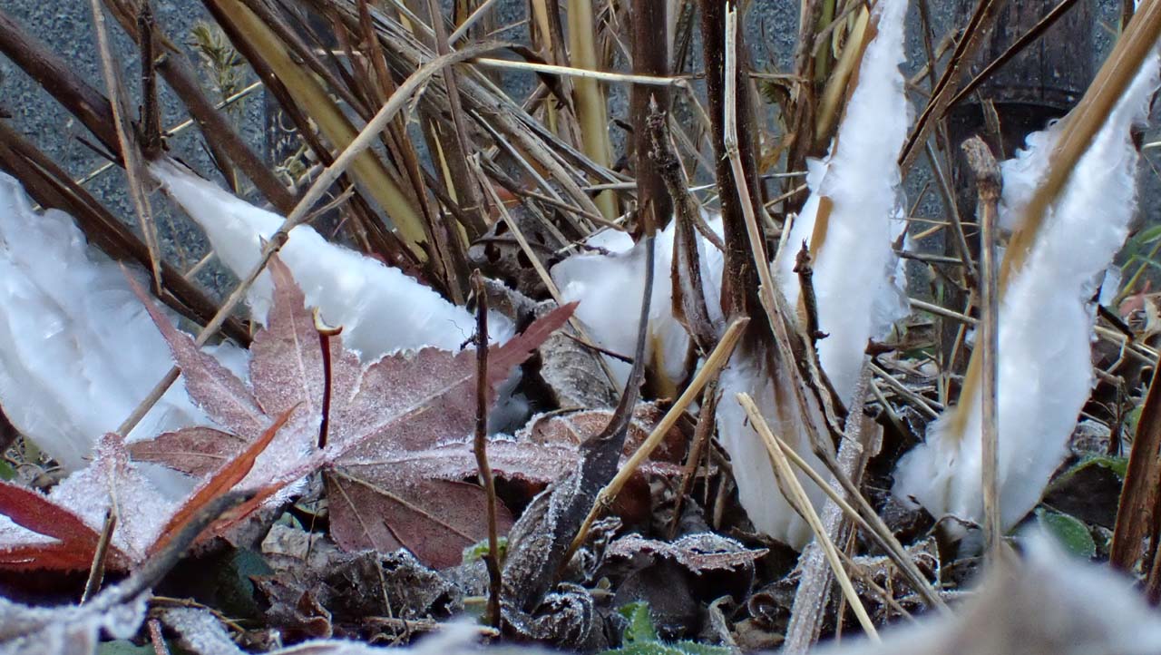 京王線高尾山口駅8時半集合ですが、少し早めに行って599ミュージアム前のシモバシラができているか見に行きました。それほど立派なものではありませんが、とりあえずできていることを確認して、駅に戻ります。