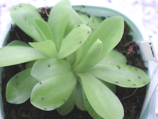 | ムシトリスミレの別種(Agnata)です。葉の形は下のものとずいぶん違いますが、花はそっくりです。 | |